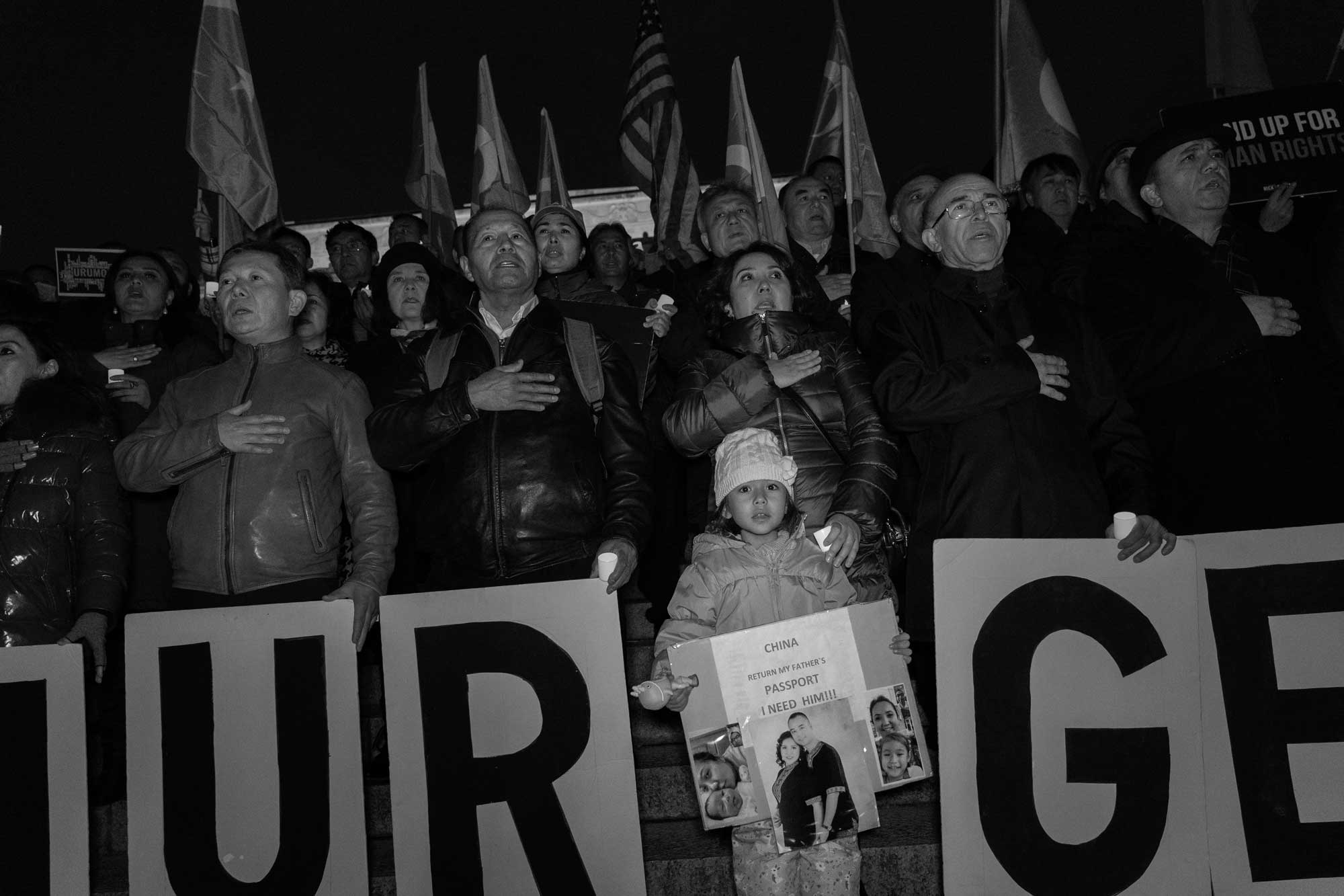 Adalet adjusts Erden’ay's hijab as they prepare for prayers and breakfast at the Uyghur Mosque in Fairfax during the holy month of Ramadan. "When my daughter tells me we have no family in America, I show my daughter to our Uyghur community,” said Adalet. “I held her hand and told her, ‘Hey baby, we are not alone. Look at these brothers and sisters, aunties, uncles, grandpas and grandmas, they are our family.’"